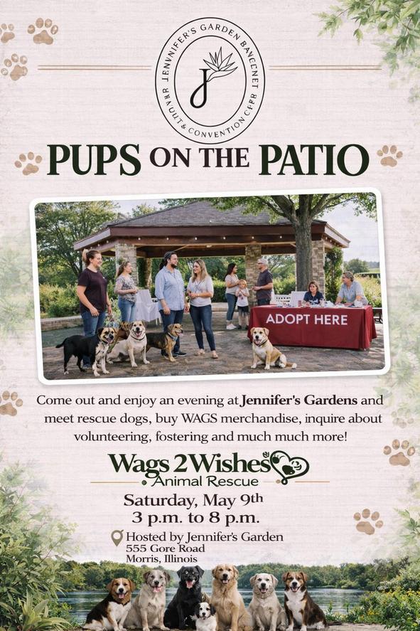 JOIN US FOR AN EVENING OF PUPS, DRINKS, FOOD AND GOOD COMPANY AT JENNIFERS GARDENS, MORRIS IL