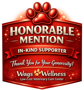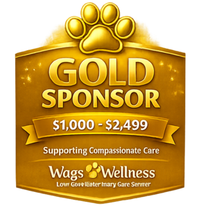 A Gold Sponsorship provides critical, high-impact support for both Wags 2 Wishes Animal Rescue and the future Wags 2 Wellness Veterinary Care Center. Contributions at this level help fund larger initiatives that directly enhance the daily lives of rescue animals while strengthening our ability to provide accessible veterinary care to the community.