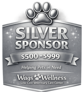 Silver Sponsorships make a meaningful impact across both Wags 2 Wishes Animal Rescue and the future Wags 2 Wellness Veterinary Care Center. Contributions at this level help fund higher-impact needs that directly support animal care and community access to affordable veterinary services.